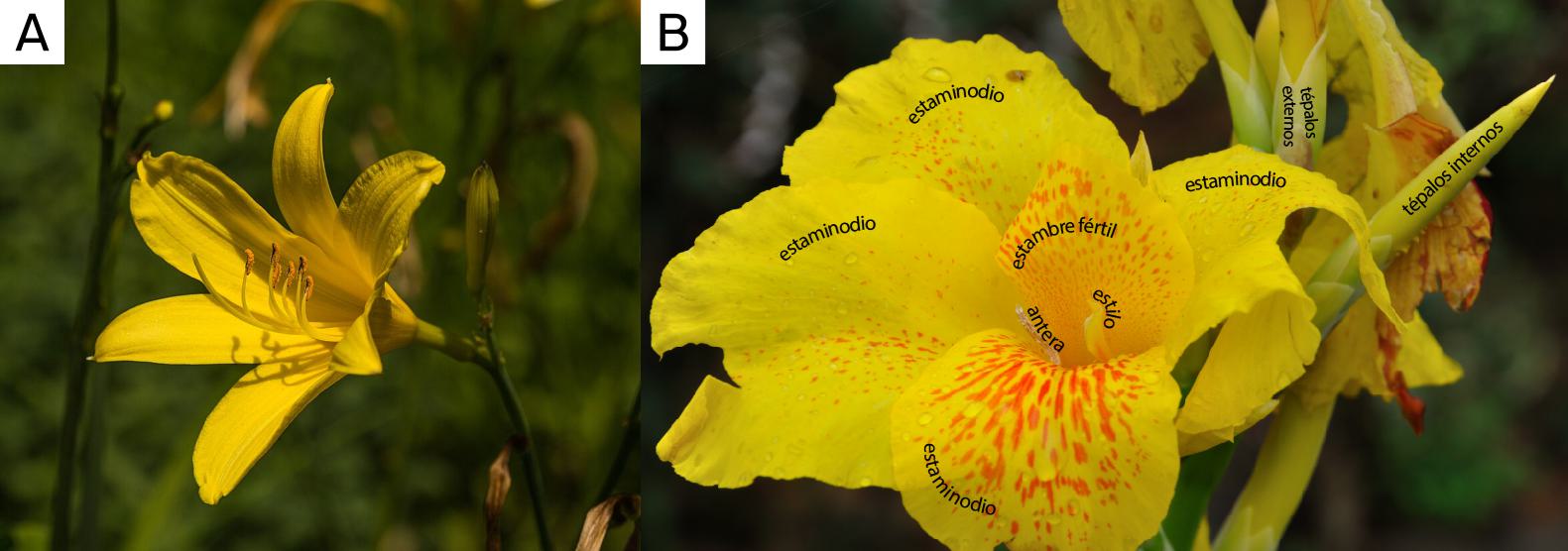 Fig 23: A. Hemerocallis sp. (Asphodelaceae). B. Canna sp. (Cannaceae).