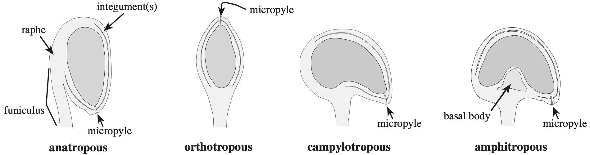 Los óvulos son semillas inmaduras, y consisten técnicamente en un megaesporangio envuelto por uno o más tegumentos.