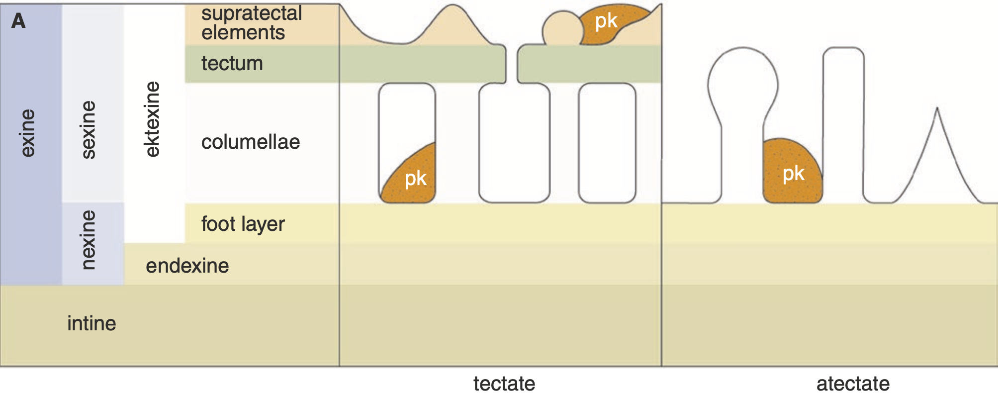 | Ornamentación del polen | Lisa, con poco o nada de pollenkitt | A menudo elaborada, con pollenkitt |