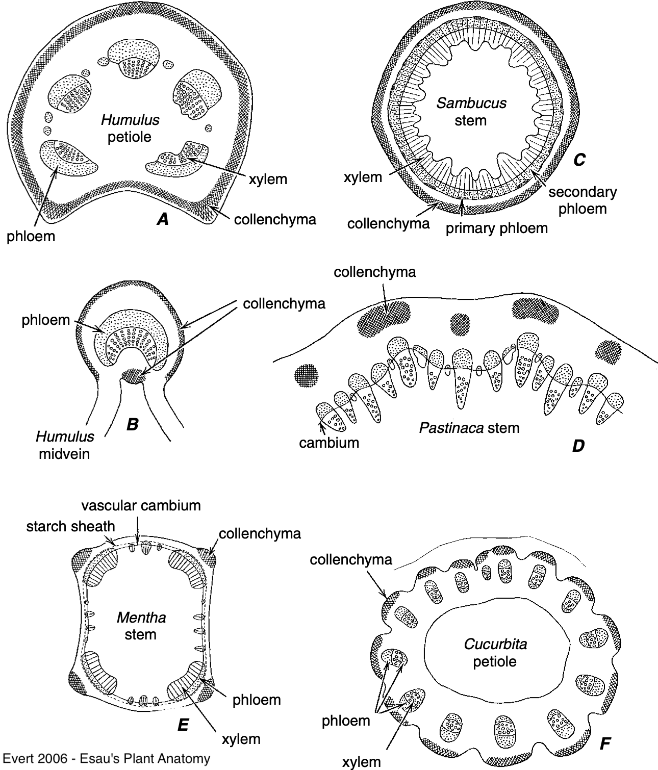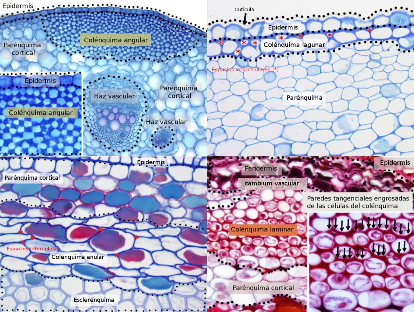 Fig 47: Colénquima de diferentes plantas. Megías-Pacheco et al. (2017).