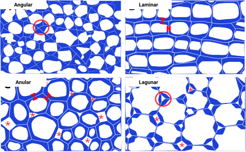 | Poros pequeños y más numerosos | Poros grandes y menos numerosos |