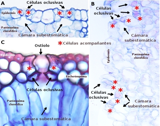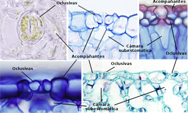 Abertura en la epidermis de hojas y tallos, bordeada por dos células oclusivas, que facilita el intercambio de gases. También se utiliza para referirse al aparato estomático completo, que incluye las células oclusivas y el poro que forman. Evert (2006).