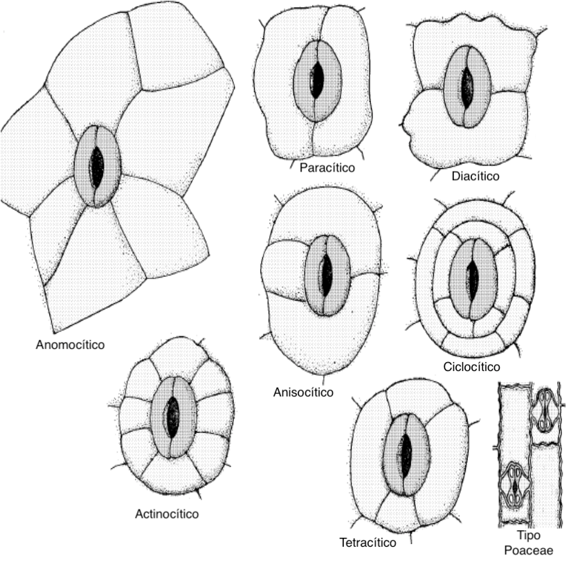 Clasificados en función de la organización de las células oclusivas y las células acompañantes