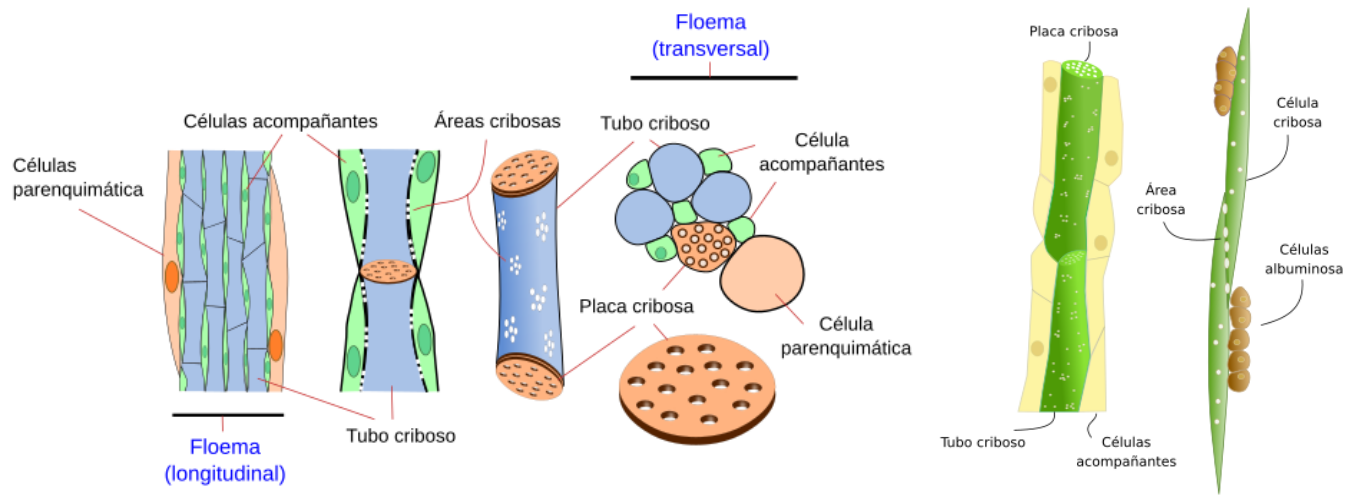 | Tubos cribosos | Células cribosas |