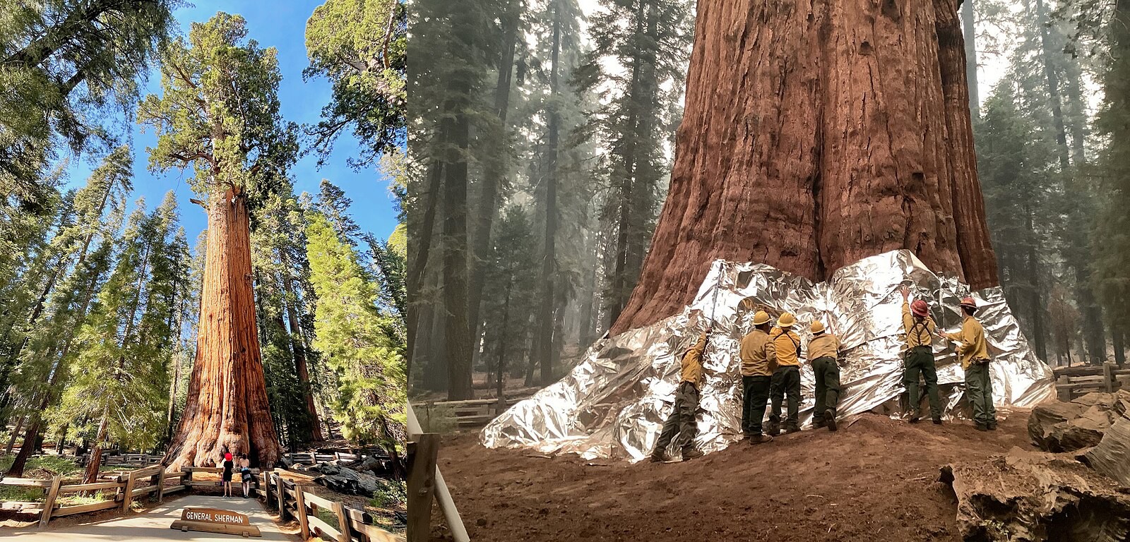 Fig 1: El General Sherman es una secuoya (Sequoiadendron giganteum) considerada el árbol de un solo tronco más grande del mundo. Su volumen se estima en 1,487 m³, con una altura de 83.8 m. La base tiene una circunferencia de 31.3 m y un diámetro de 11.1 m. Marty Aligata, CC BY-SA 4.0 & Elizabeth Wu, National Park Service, Public domain, via Wikimedia Commons.