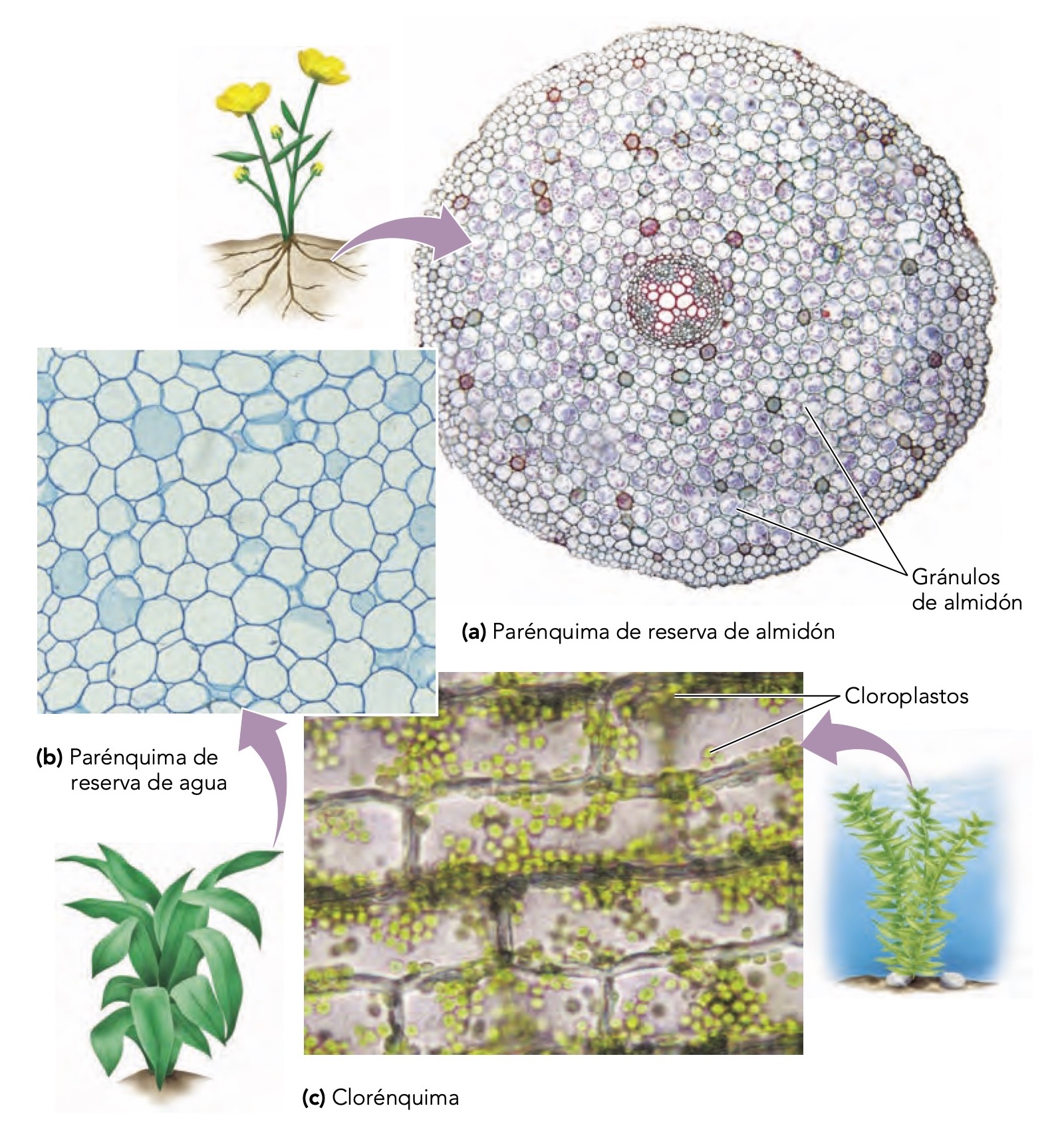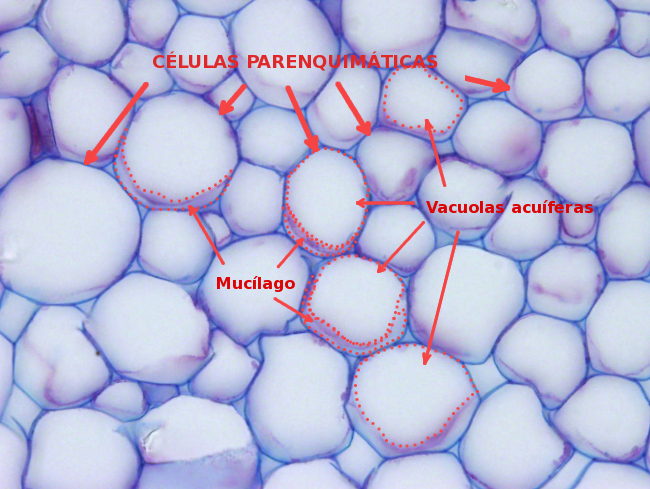 La mayoría de las frutas, verduras y otras partes de las plantas que consumimos están compuestas casi en su totalidad por parénquima. Mauseth (2016)