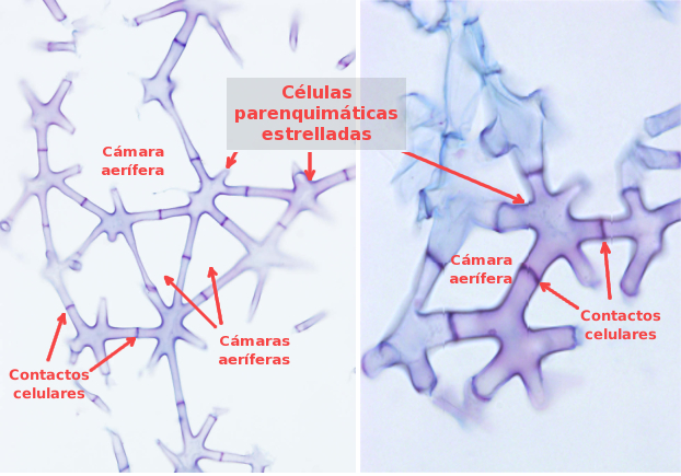 | Células cortas que forman filas que crean largos tubos | Son células alargadas con los extremos solapados |