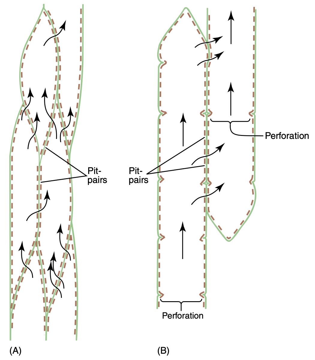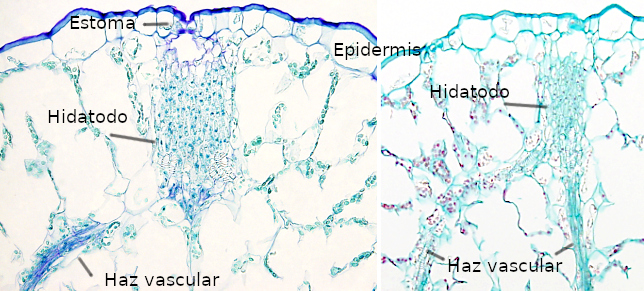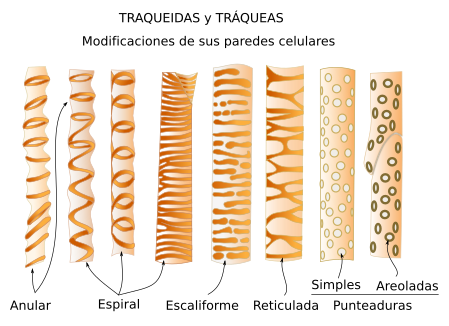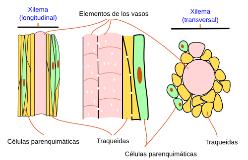 | Principal elemento conductor de las angiospermas | Principal elemento conductor de helechos y gimnospermas |