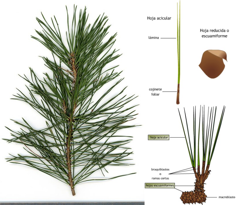 Hojas normales o nomófilos de una misma planta de tamaño y forma diferentes (polimorfismo)