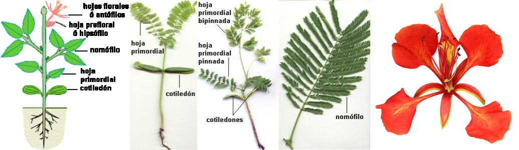 Serie de metamorfosis que experimentan los filomas de las plantas cuando se consideran a partir de los cotilédones hasta llegar a los antofilos u hojas florales. Font Quer (2001).