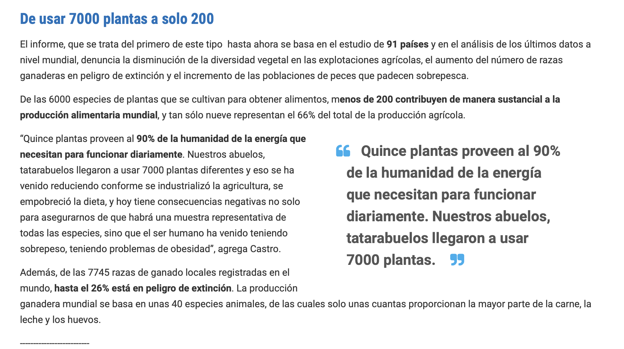 Fig 13: La biodiversidad que nos alimenta está gravemente amenazada. (FAO, 2019; ONU, 2019).