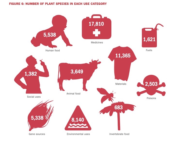 Las plantas entran en nuestras vidas de innumerables maneras más allá de ser fuentes de alimento. Nos proporcionan fibra para la ropa, madera para muebles, refugio y combustible, papel para libros, especias para dar sabor, medicamentos y el oxígeno que respiramos. Dependemos completamente de las plantas. Además, tienen un gran atractivo sensorial y enriquecen nuestras vidas a través de los jardines, parques y áreas silvestres que disfrutamos. Evert & Eichhorn (2013).
